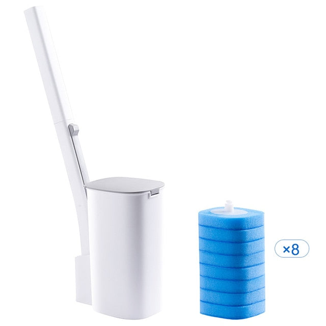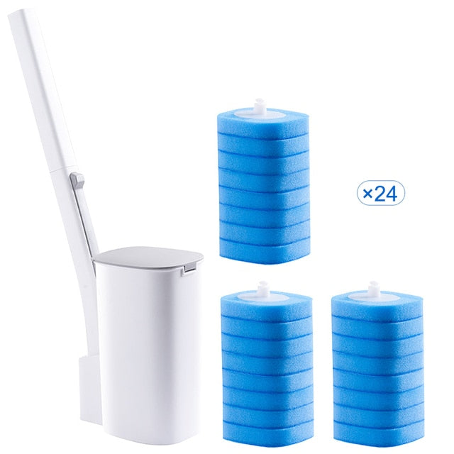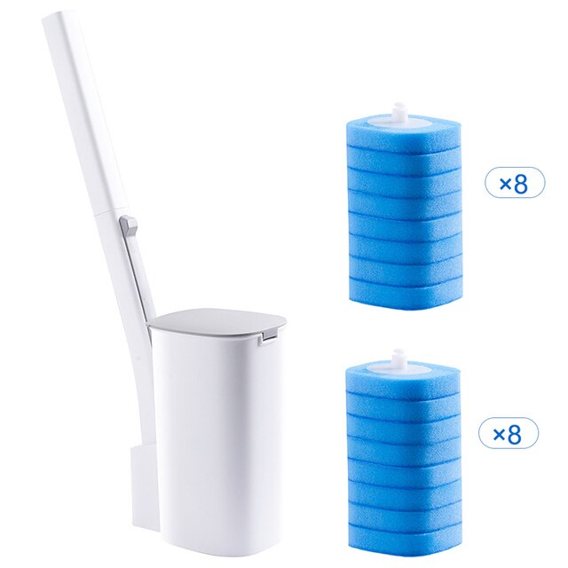 The toilet brush head comes with a cleaning fluid layer. 3-layer thick cleaning design: The cleaning liquid layer dissolves in water (disinfection and sterilization). The tissue layer REMOVES STUBBORN STAINS with just one seesaw. The sponge layer effectively cleans crevices. Triple protection allows easy removal of toilet stains.